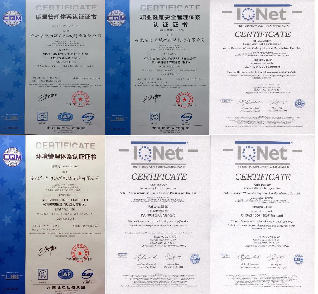 2014年底,在公司全體員工的努力下,我公司順利通過ISO9000的審核,并順利通過ISO14000、OHSA18000認(rèn)證。