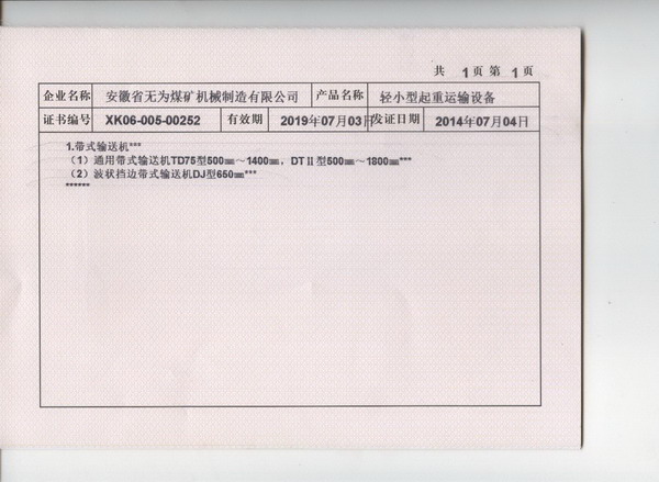 公司名稱:安徽省無為煤礦機(jī)械制造有限公司